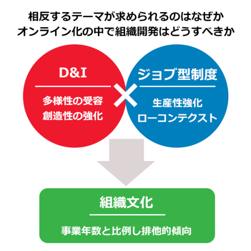 今なぜ、創造性や多様性のD&Iと、生産性のジョブ型、排他的になりがちな組織文化が求められるのか。